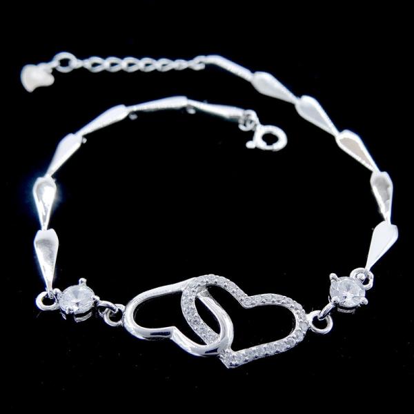 Two Hearts Design For Young Ladies Real Silver Bracelet Jewelry